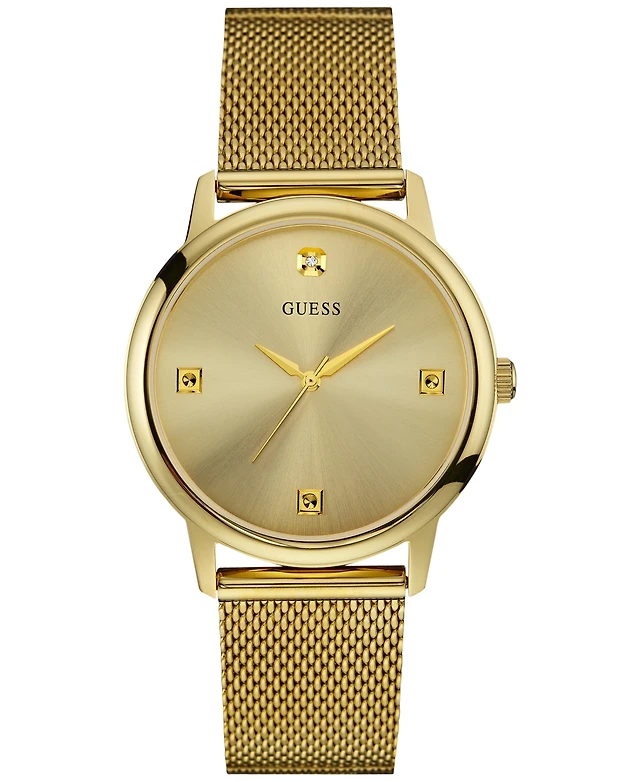 Guess Men's Diamond Accent Gold-Tone Stainless Steel Mesh Bracelet Watch 40mm U0280G3