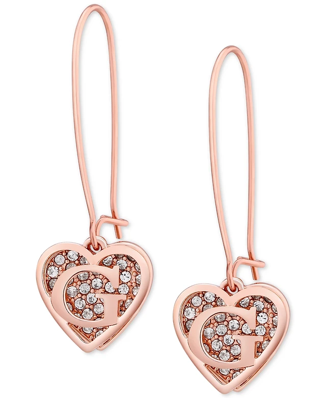 Guess Rose Gold-Tone Pave Heart Logo Drop Earrings