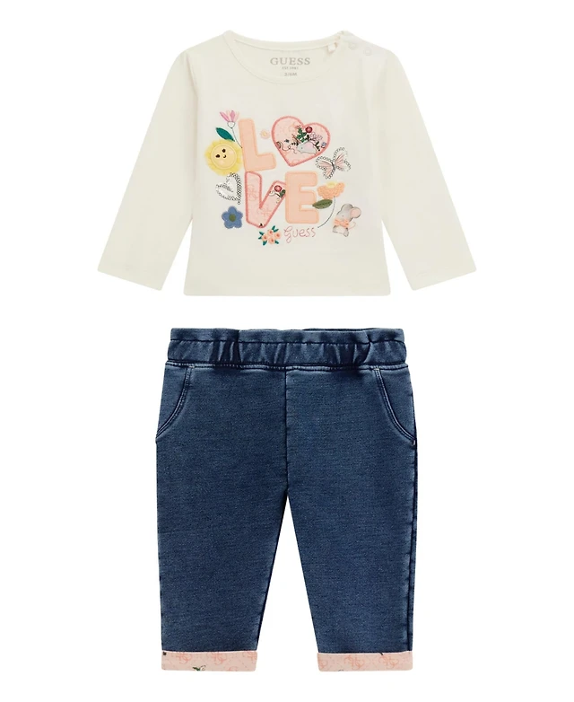 Guess Baby Girls 2-Piece Long Sleeve T-Shirt and Knit Denim Pants Set