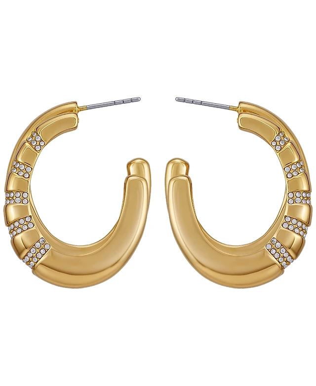 Guess Glass Stone Gold-Tone Pave Huggie Hoop Earrings