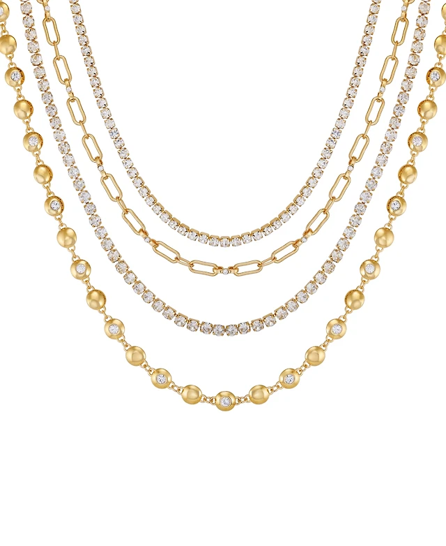 Guess Rhinestone Gold-Tone Multi-Row Necklace