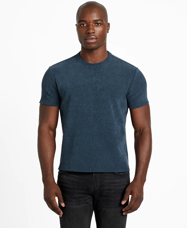 Guess Men's Relaxed Fit Linear Textured Short Sleeve Crewneck T-Shirt
