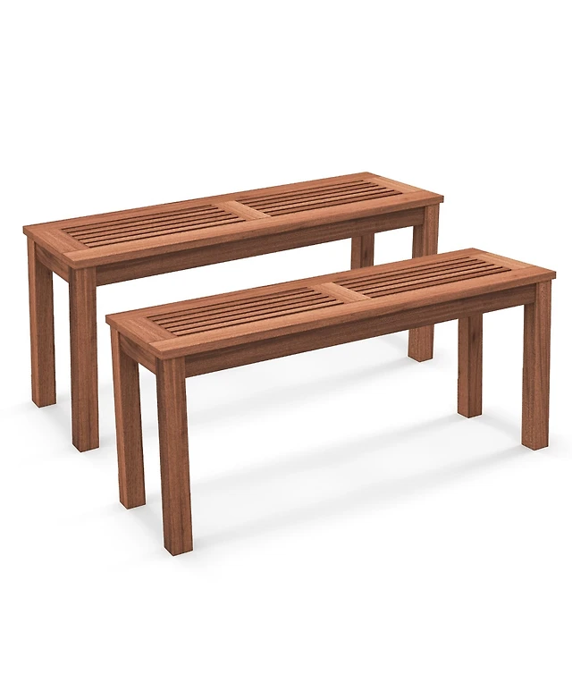 Gymax 2PCS 51'' Wooden Outdoor Bench Patio Dining Bench w/Acacia Wood Seat