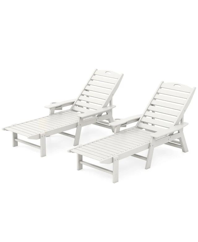 Gymax Set Of 2 Outdoor Chaise Lounge Chair w/ Adjustable Backrest Cushion & Storage