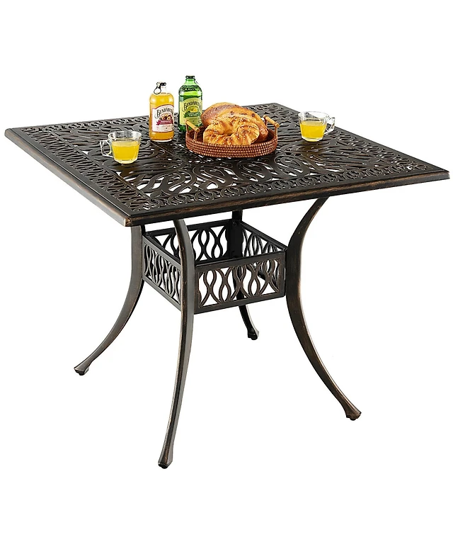 Gymax 59'' Patio Rectangle Dining Table Outdoor Cast Aluminum Table with Umbrella Hole
