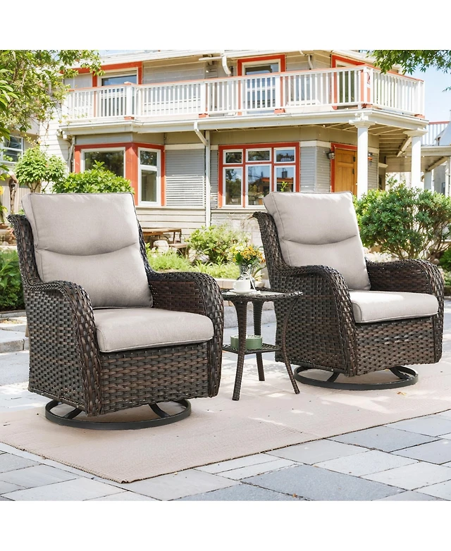 Gymojoy Farmhouse Outdoor Wicker Swivel Glide Chair Set with 6" Thickness Cushions
