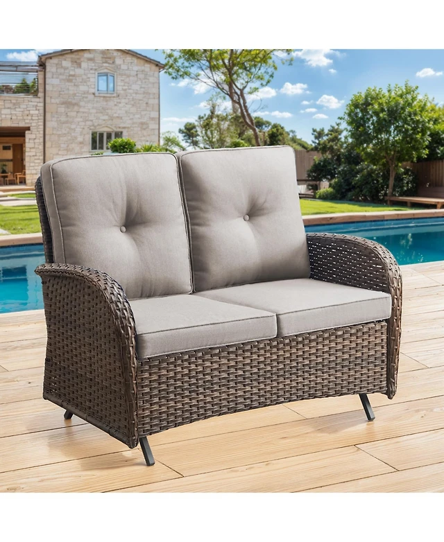 Gymojoy SleekArm 2-Person Wicker Rocking Bench Outdoor Glider Patio Rattan Loveseat with Olefin Cushions