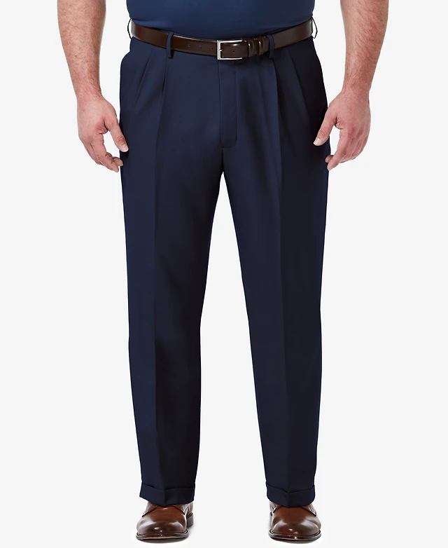 Haggar Men's Big & Tall Premium Comfort Stretch Classic-Fit Solid Pleated Dress Pants