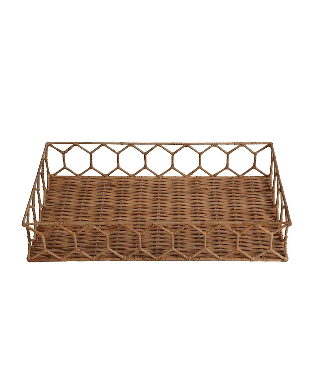 Jonathan Y Honeycom Rustic Bohemian Hand-Woven Rattan Tray