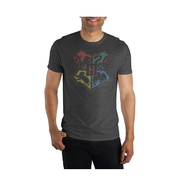 Harry Potter Men's Hogwarts Crest Charcoal Heather T-shirt-xxl
