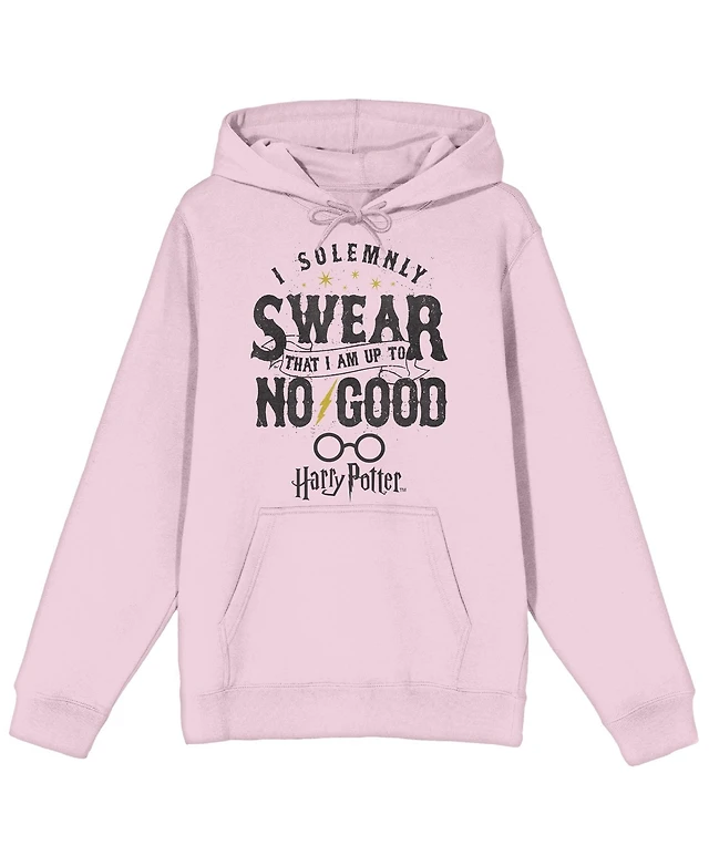 Harry Potter Men's I Solemnly Swear Am Up To No Good Long Sleeve Cradle Pink Hooded Sweatshirt-Medium