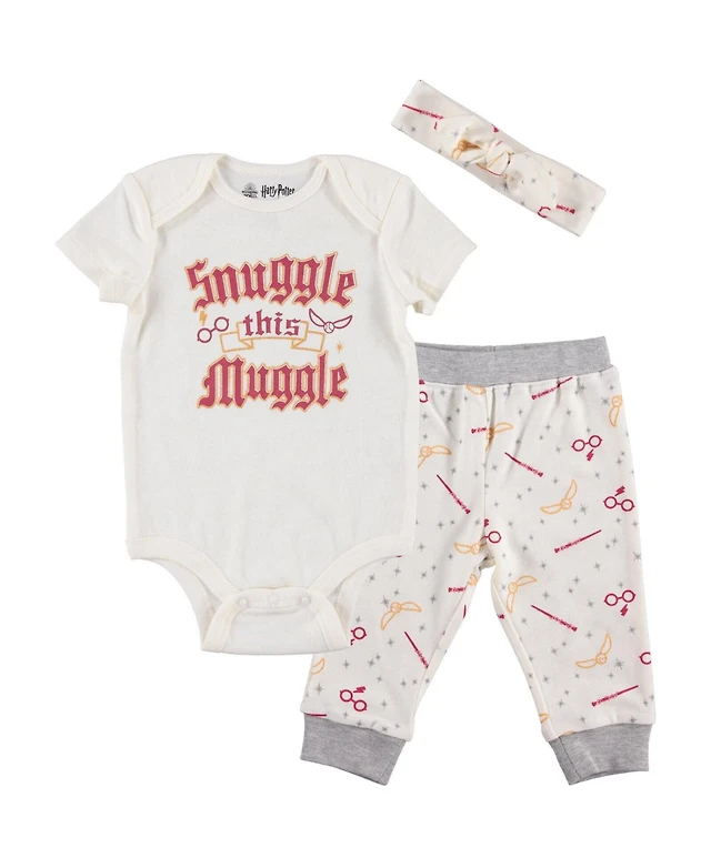 Harry Potter Baby Boys 3 Piece Outfit Set: Cuddly Bodysuit Pants Hat