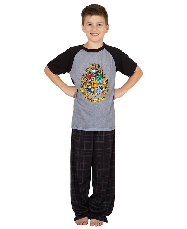 Harry Potter Boys Hogwarts Castle Crest 2-Piece Raglan Plaid Pajama Pant Set