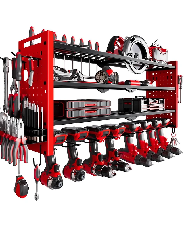 Hausource 4 Tier Power Tool Organizer Shelving Wall Mount Utility Storage Rack,Red