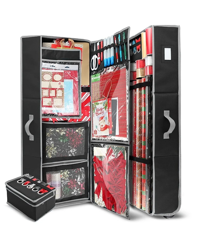 Premium Holiday Gift Wrapping Paper & Accessories Storage Organizer Box - Large
