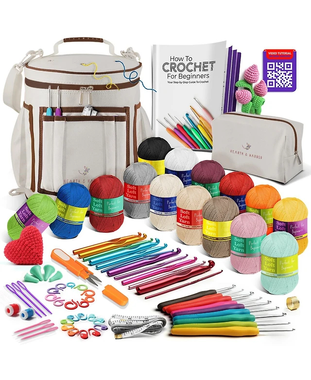 Hearth & Harbor Crochet Starter Kit for Beginners Adults Kids with Video Tutorials - Amigurumi Crocheting Yarn Bag