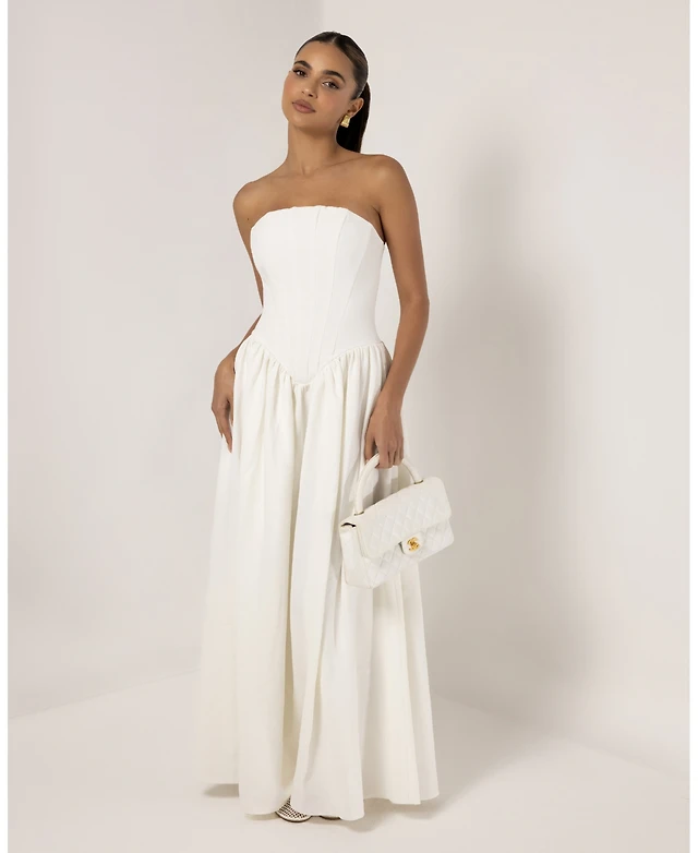 Heiress Beverly Hills Women's Strapless Cream Chiffon Maxi Dress