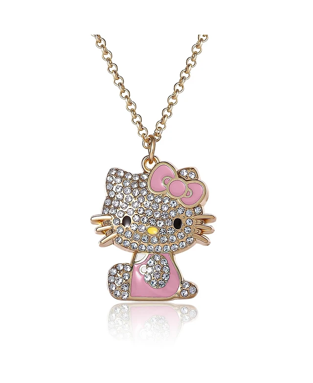 Hello Kitty Sanrio Crystal Pendant Necklace - Gold-Tone with Colorful Enamel Accents