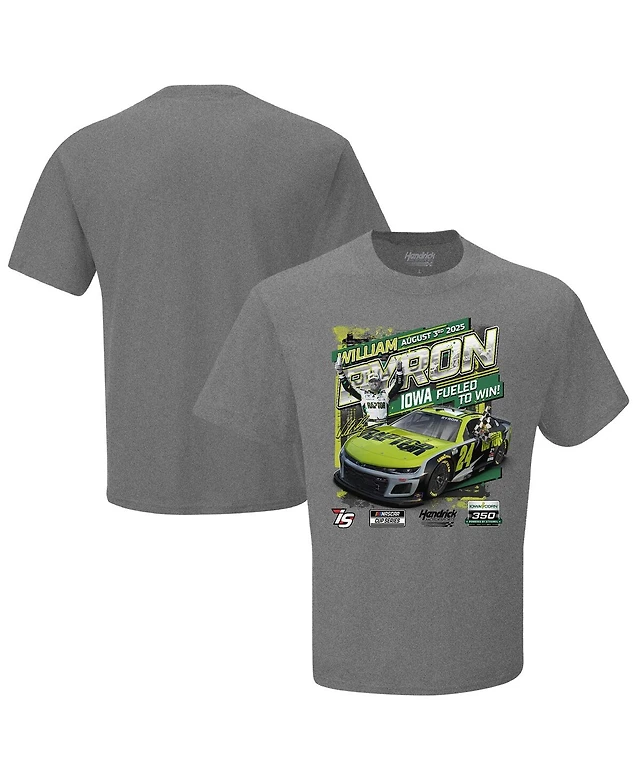 Hendrick Motorsports Team Collection Men's Checkered Flag Sports Heather Charcoal William Byron 2025 Iowa Corn 350 Race Winner T-Shirt