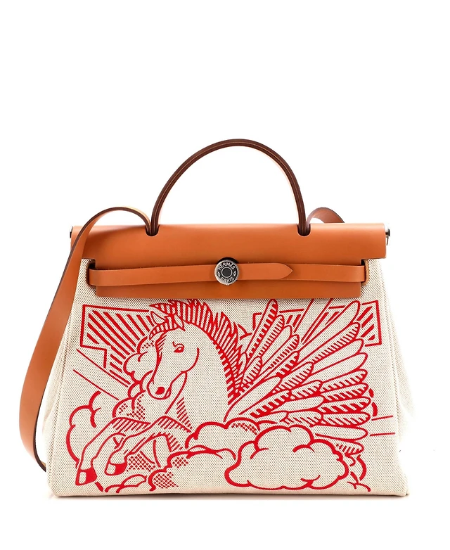 Pre-Owned Hermes 31 Herbag Zip Pegase Pop Toile and Leather