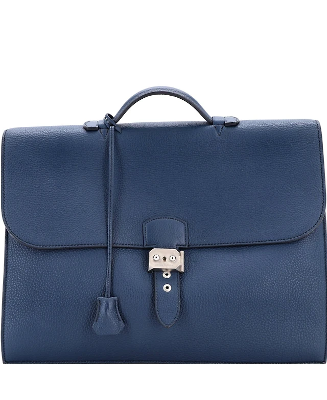 Pre-Owned Hermes Kelly 28 Handbag Blue Madame with Palladium Hardware