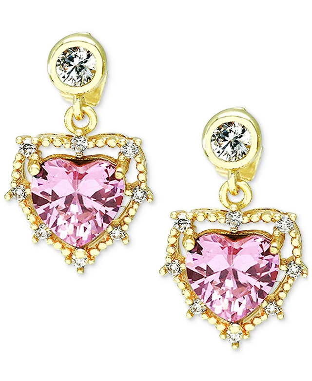 Heymaeve 18k Gold-Plated Mixed Color Cubic Zirconia Heart Drop Earrings
