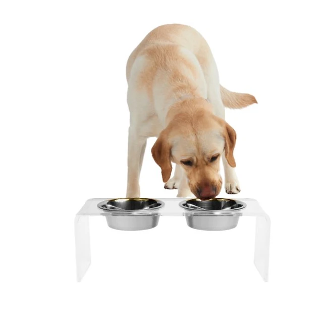 Large Clear Double Bowl Pet Feeder, 2 Quart Bowls
