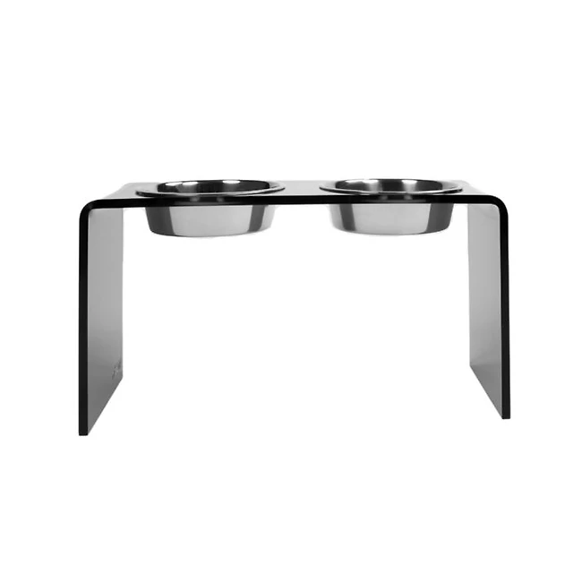 Small Smoke Grey Double Bowl Pet Feeder, 1 Pint Bowls