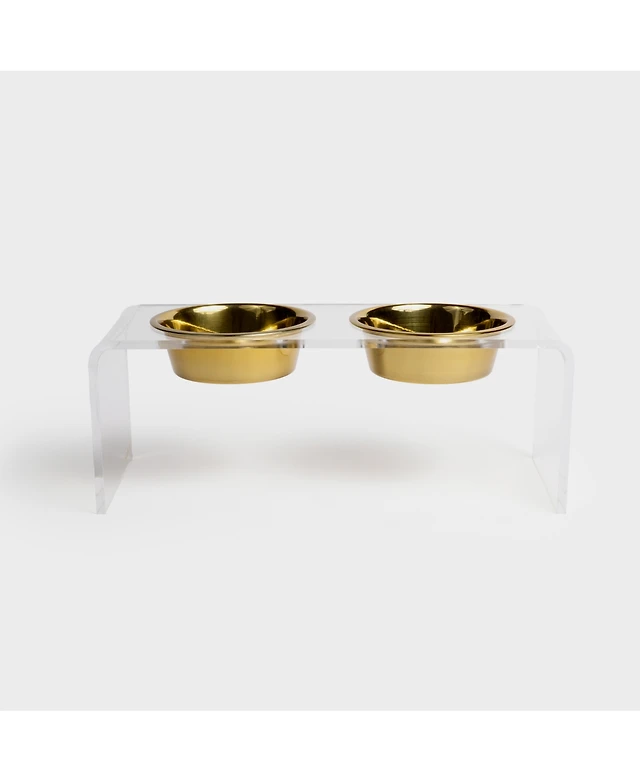 Hiddin Medium Clear Double Bowl Pet Feeder, 1 Quart Gold Bowls