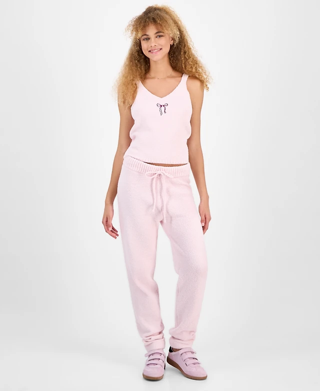 Hippie Rose Juniors' Teddy-Knit Drawstring Jogger Pants