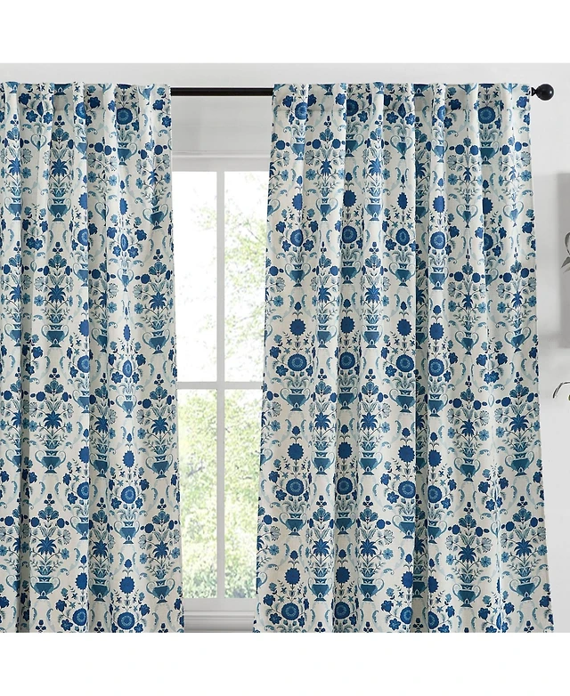 Hlc.me Jasmine Floral Patterned Room Darkening Curtain Rod Pocket Pole Top Panels