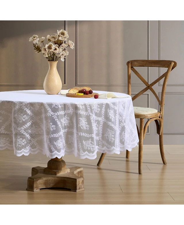 Hlc.me Alona Lace Fabric Table Cloth for Round Tables, Wrinkle Resistant Tablecloth