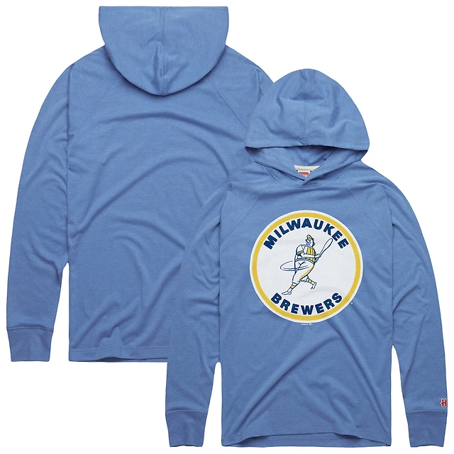 Men's Homage Powder Blue Milwaukee Brewers Lightweight Raglan Tri-Blend Pullover Hoodie
