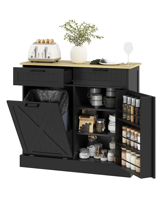 Homcom 10 Gallon Kitchen Island with Trash Can Storage and Drawers,