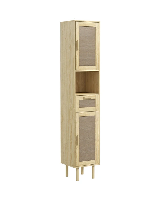 Homcom Tall Bathroom Storage Cabinet with Rat Doors,