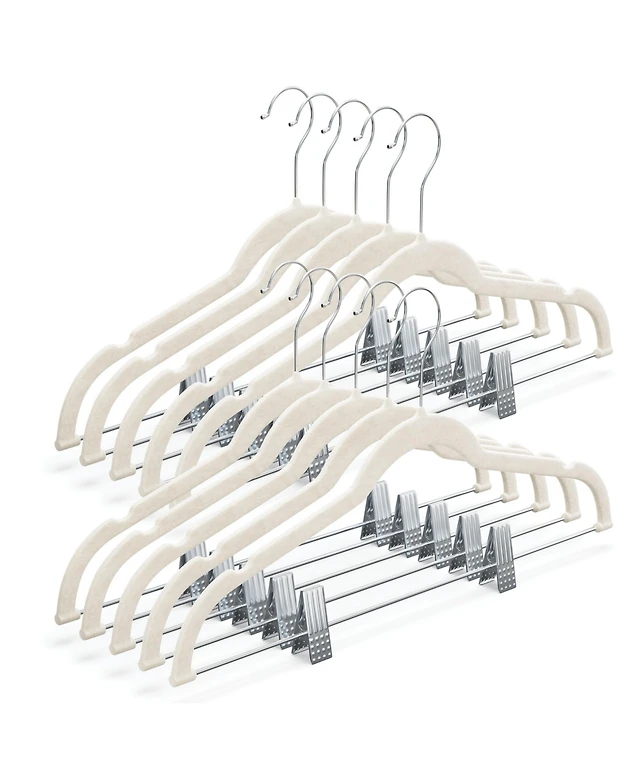 10-pack Velvet Hanger - Ultra-Thin Ivory Hangers with Clips - Non-slip Hangers for Skirts and Pants