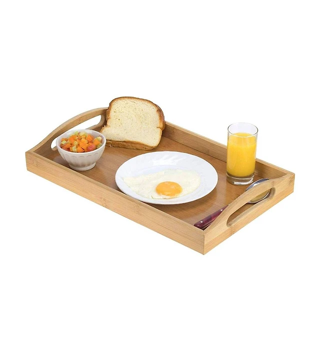 Serving Tray Bamboo - Wooden Tray with Handles - Great for Dinner Trays, Tea Tray, Bar Tray, Breakfast Tray, or Any Food Tray