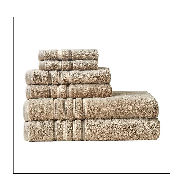 Home Outfitters 67% Cotton 33% Polyester Sustainable Blend 6PC Bath Towel Set , Absorbent, Bathroom Spa Towel, Casual