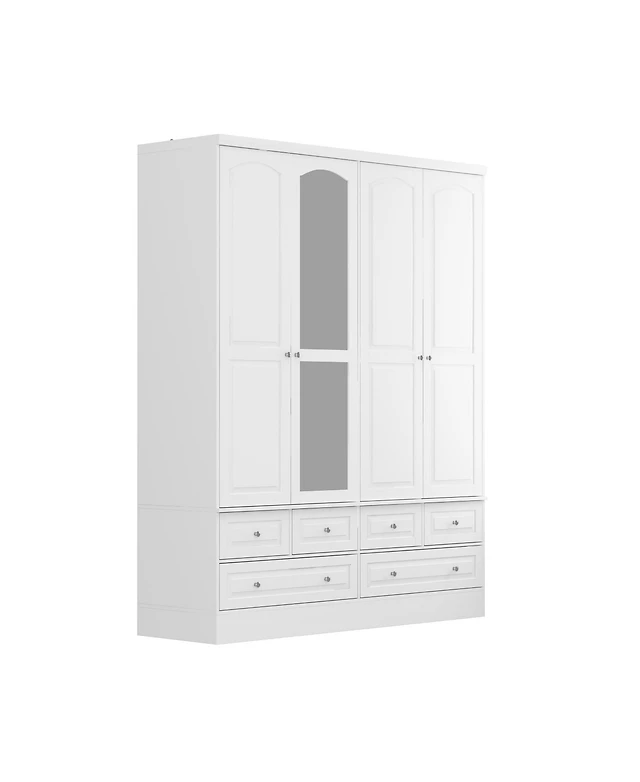 Luxury white 4-door 6-drawer wardrobe with mirror, bedroom Armoire, Closet