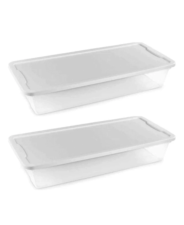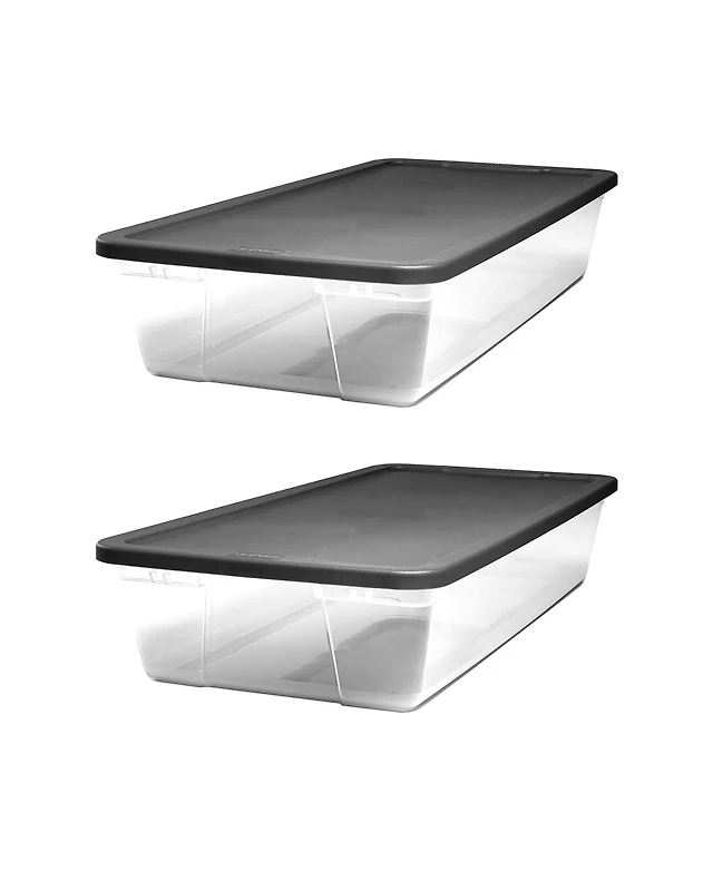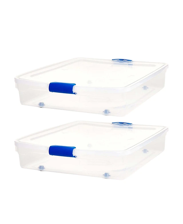Homz 56 Qt Full/Queen Underbed Clear Plastic Latching Storage Container, 2 Pack