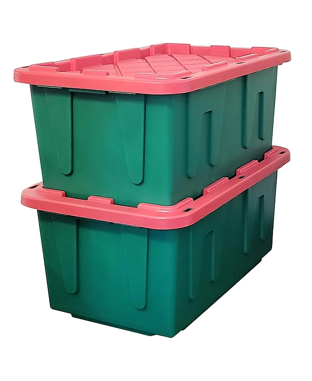Homz Durabilt 15 Gallon Heavy Duty Holiday Storage Tote, Green/Red (2 Pack