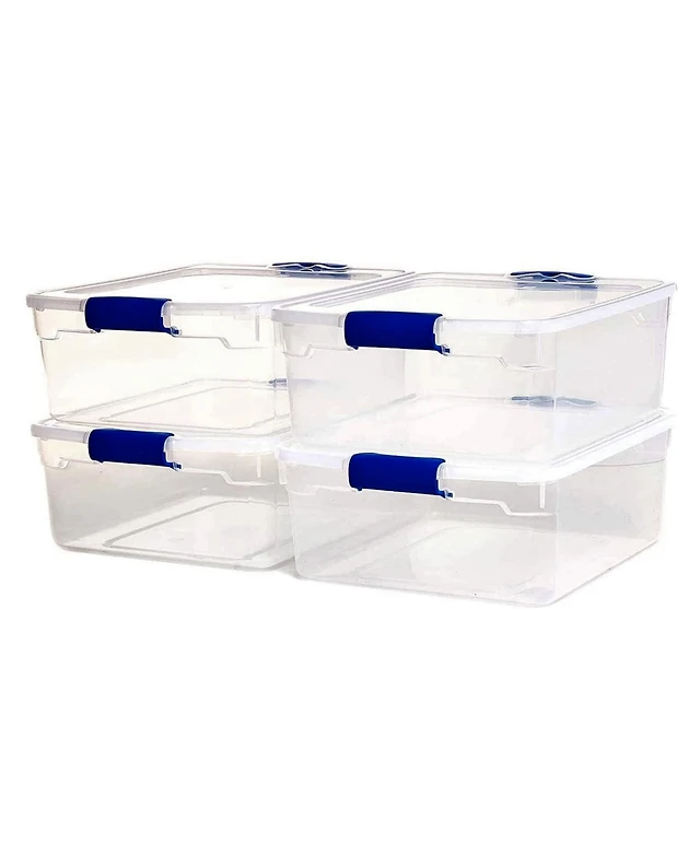 Homz 31 Qt Heavy Duty Clear Plastic Latching Stackable Storage Containers, 4 Pk