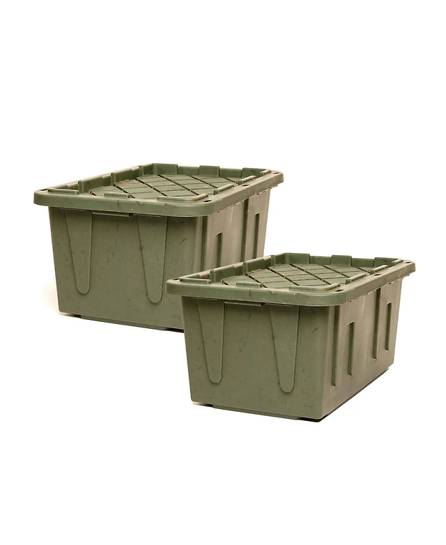 Homz Durabilt 27 Gallon Heavy Duty Storage Tote with Lid, Green Camo (2 Pack