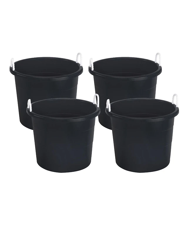 Homz Plastic 17 Gallon Utility Storage Bucket Tub w/ Rope Handle, 4 Pack