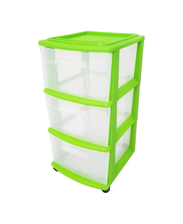 Homz Plastic 3 Drawer Medium Storage Container Tower, Clear Drawers/Lime Frame