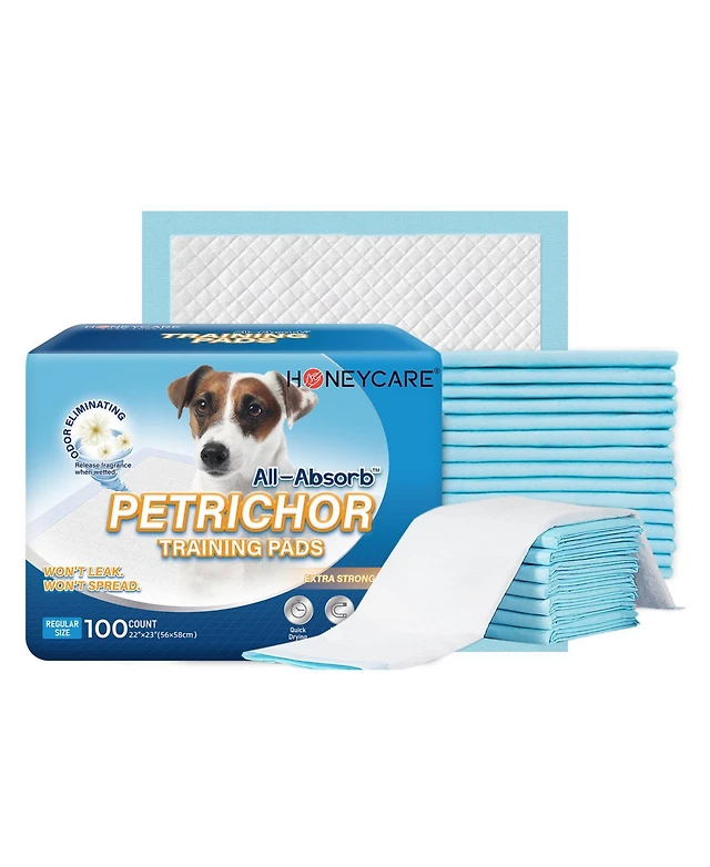 HoneyCare All-Absorb Large Dog and Puppy Training Pads, Ultra Absorbent and Odor Eliminating, Leak-Proof 5-Layer Potty Training Pads with Quick-Dry Su