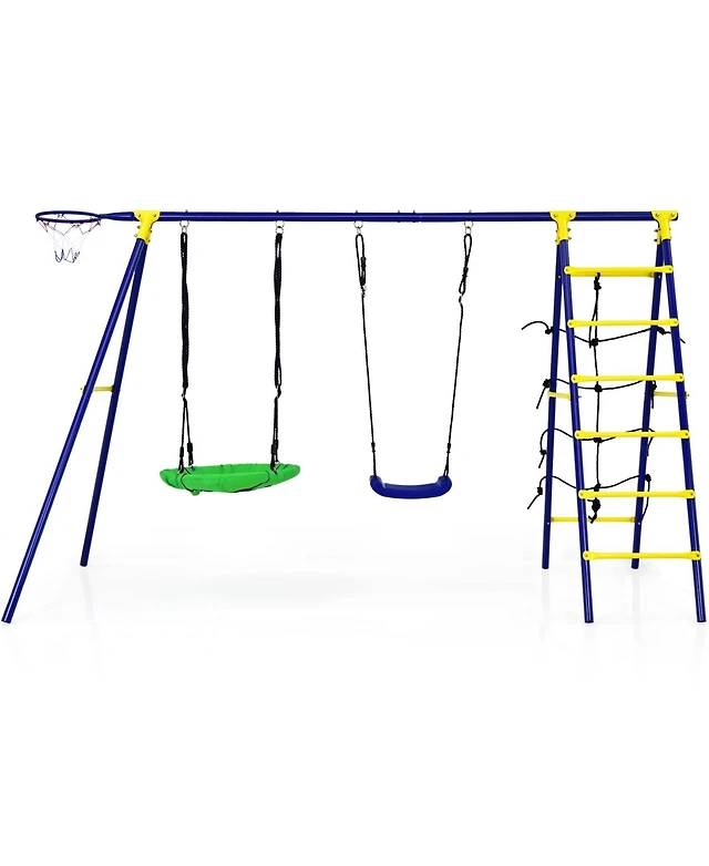 Hongge 550 Lbs 6-in-1 Patio Kids Swing Set with Climbing Net and Ladder