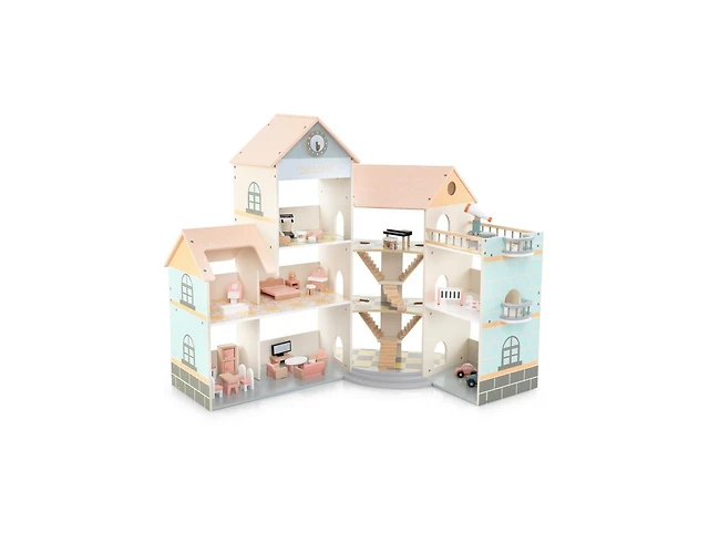 Hongge Wooden Corner Dollhouse Playset with 6 Rooms and 36 Pieces for Kids 3+ Years Old