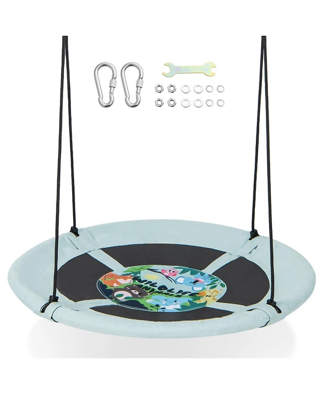 Hongge 40 Inches Saucer Tree Swing Round with Adjustable Ropes and Carabiners