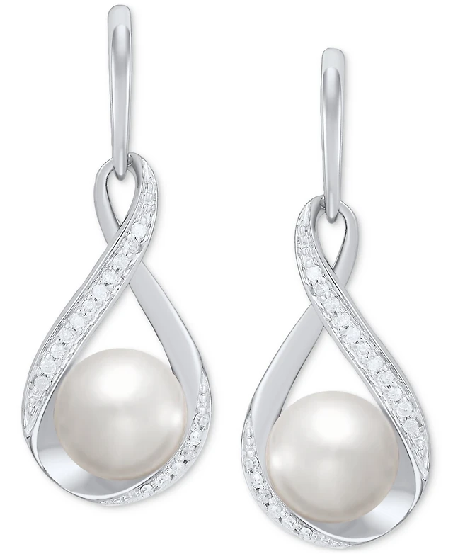 Cultured Freshwater Pearl (8mm) & Diamond (1/5 ct. t.w.) Drop Earrings in 14k White Gold